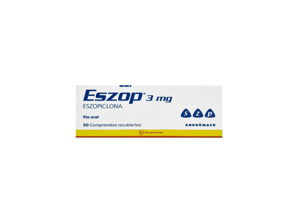 Eszop es un medicamento indicado para el tratamiento de trastornos del sueño, en especial el insomnio. Su principio activo, Eszopiclona, es un medicamento que pertenece a la clase de los hipnóticos, y se utiliza para inducir el sueño y mejorar su calidad. Eszop actúa rápidamente para ayudar a las personas a quedarse dormidas y a mantener un sueño profundo durante toda la noche, favoreciendo un descanso reparador. Este medicamento está especialmente indicado para quienes sufren de insomnio de corta duración o aquellos que necesitan regular sus ciclos de sueño debido a cambios en sus horarios o hábitos.